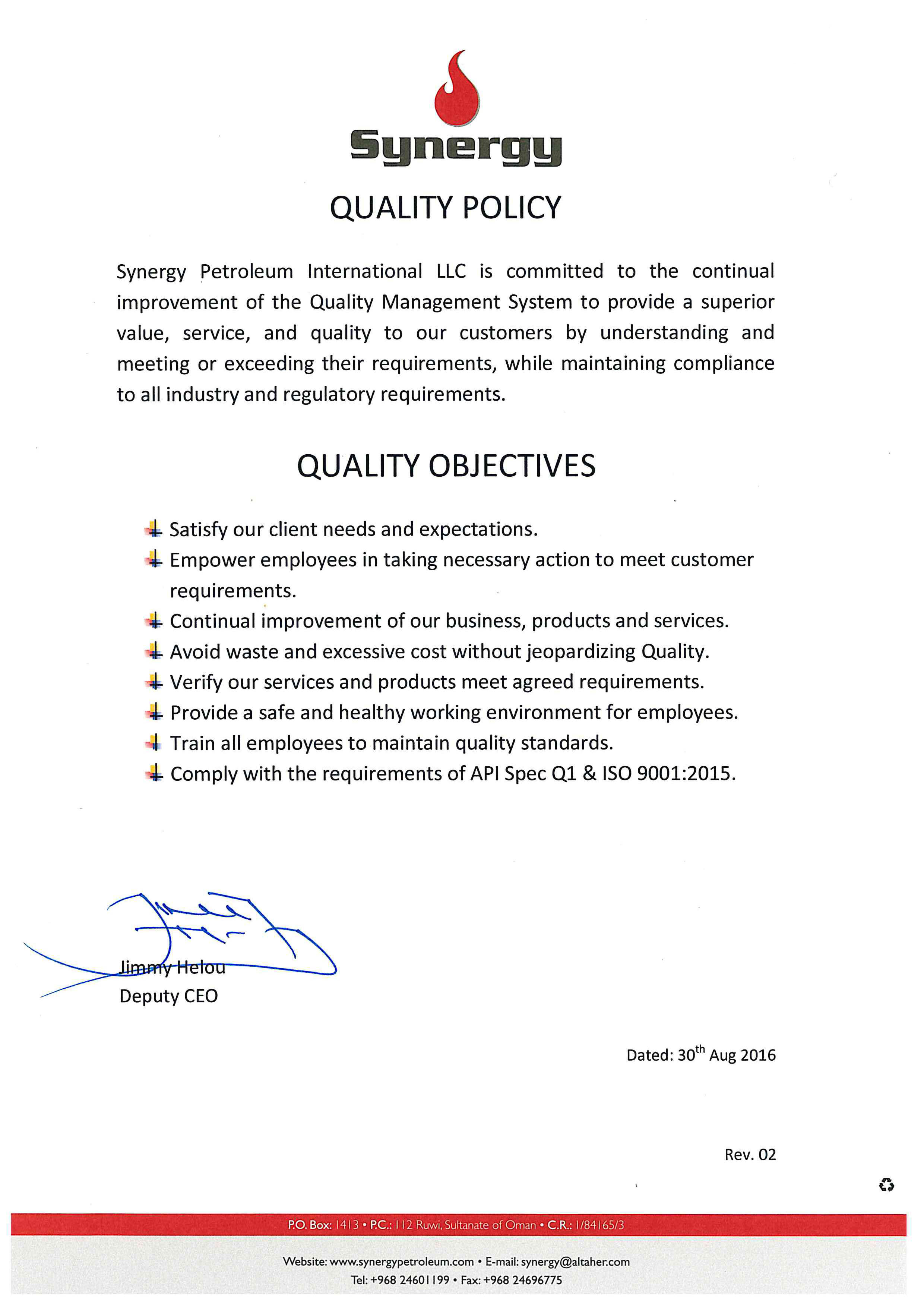 Synergy Petroleum International (SPI) is highly committed to QHSSE regulations and quality standards. The health, safety and security of our personnel along with the protection of the natural environment are of the utmost importance at SPI. Our basic objective is to maintain a safe working environment for our team and our visitors. The high number of LTI free man-hours has helped SPI gain international recognition and appreciation. To date, SPI has been awarded API Q1, ISO 45001:2018, ISO 9001:2015 and EMS 14001:2015.